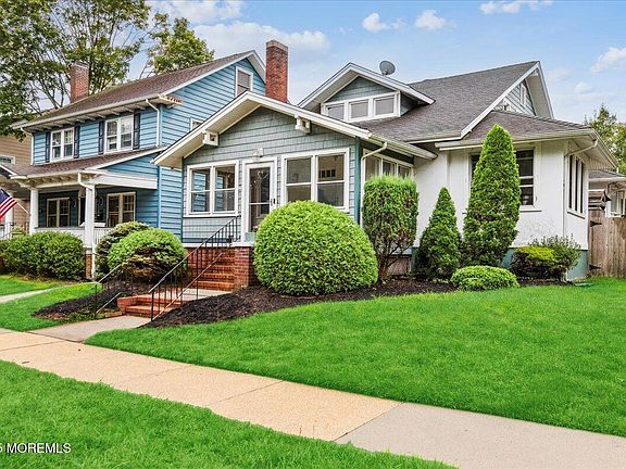 Charming shore colonial located in one of Belmar's most desirable sections—just 3 blocks from the beach & close to downtown, dining, and NYC train. The main house offers an enclosed front porch, sunroom, & spacious living room with hardwood floors and a wood-burning FP. A formal dining room, & spacious kitchen, updated with newer stainless steel appliances and a commercial-grade stove. The first floor includes 2 bedrooms, including a master suite, while the second floor features another master plus 2 additional BRs w/ hardwood floors, cedar closets, and ample storage. Updated bathrooms throughout add to the appeal. Above the two-car garage is a private one-bedroom apartment with separate entrance and balcony—perfect for rent. A mus