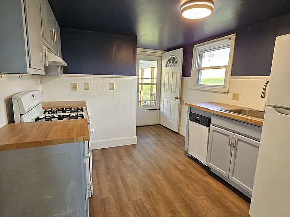 Cozy, updated ranch for rent in Hyde Park- Kiski School District. 2 bedrooms and one full bath. Bathroom has walk in shower. Kitchen is a brand new renovation- new fridge, dishwasher, gas stove. Living room/dining has plenty of natural light. Front bonus room could be a small home office or has hook-ups for laundry if one-level living is needed. Small enclosed front porch. Large basement with washer and dryer and a Pittsburgh potty. Yard is sloped but nice sized. On-street parking.