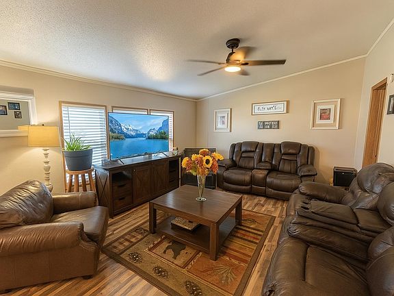 *** Can Be Moved*** Welcome to this beautifully maintained home in Woodridge Mobile Home Park, SE Minot. This spacious double-wide residence perfectly blends comfort and functionality. The kitchen features a central island, stainless steel appliances, and ample counter space, creating an inviting area for meal prep. The adjacent dining area seamlessly connects to the living room, making it ideal for entertaining family and friends. The primary suite includes a private bathroom with updated marble countertop, a stylish vanity, new lighting, shower fixtures, and new toilet with bidet. Two additional generously sized bedrooms offer versatility for guests or a home office, while the hallway bathroom boasts a brand-new granite-top vanity, fixtures and toilet with bidet as well! The dining room features a new dimmable chandelier that's Alexa-compatible, adding a modern touch to your gatherings. Step outside to enjoy a spacious deck and yard, perfect for gardening and relaxation. Don't miss out on your opportunity to own this home conveniently located near shopping, restaurants, and Radio City Park! Contact your favorite realtor today for a showing! This home can be moved!