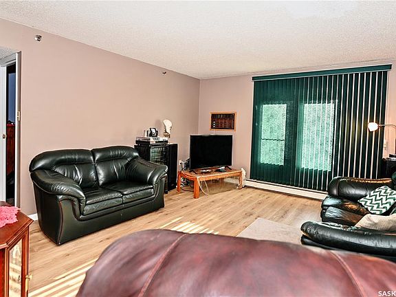 Bright and inviting 2 bedroom , 1 bath condo 850 sq feet on TOP Floor (11th ) , featuring s stunning south facing balcony City Skyline view. This well maintained unit offers numerous updates such as modern 4-piece bath, bedroom windows, padio doors, laminate flooring in living room and recent quality carpet in bedrooms. The spacious primary bedroom includes a walk in closet, and the convenience of in suite laundry adds to home appeal. Located just minutes from downtown, the river, and the university, this condo offers exceptional walkability and easy transit , shopping and amenities . A perfect opportunity for 1st time buyers, students, or anyone seeking low - maintenance urban living, Appliances included, underground rental parking & surface subject to avialability