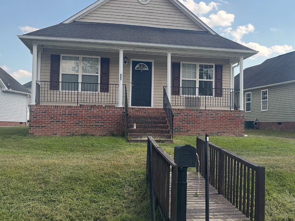 Master bedroom has its own bathroom, and two back bedrooms share a Jack and Jill bathroom. Each bedroom has a large closet and a ceiling fan. There is also one additional hall bath next to an included washer/dryer. This is a great house for a family or someone looking to live with roommates who wish to have their own bathrooms. HVAC, refrigerator, and dishwasher in unit are all also new. Several spots to park, including two designated spots behind the house. Rent includes water, trash, and lawn care.