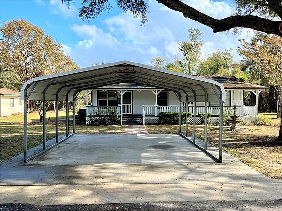 Looking for a serene area within minutes of the St Marys River Camp Pickney Rd Public Boat Launch? Look no further. This 2 bedroom 1 bath home is located on a nice lot with a large workshop and two additional sheds. Enjoy the tranquility from the full front porch or the screened in back porch. Open concept leans well for this kitchen and living room area. The bathroom has a large vanity, utility linen closet and shower. The kitchen and 2nd bedroom both open to what was a 3rd bedroom that the current owners have converted to a flex room/den family room or would be great for a large office craft space. The laundry room is in this location along with access to the back screen porch and the additional front door to the front porch. The double car metal carport with concrete deck is located in the front of the home. Seller will put on a metal roof on main house prior to closing with a full price offer. This would be a great full-time home; part time get away or investment as a short- or long-term rental. The county information on lot size conflicts with the actual warranty deed and the county has the property listed as a 3 bedroom.