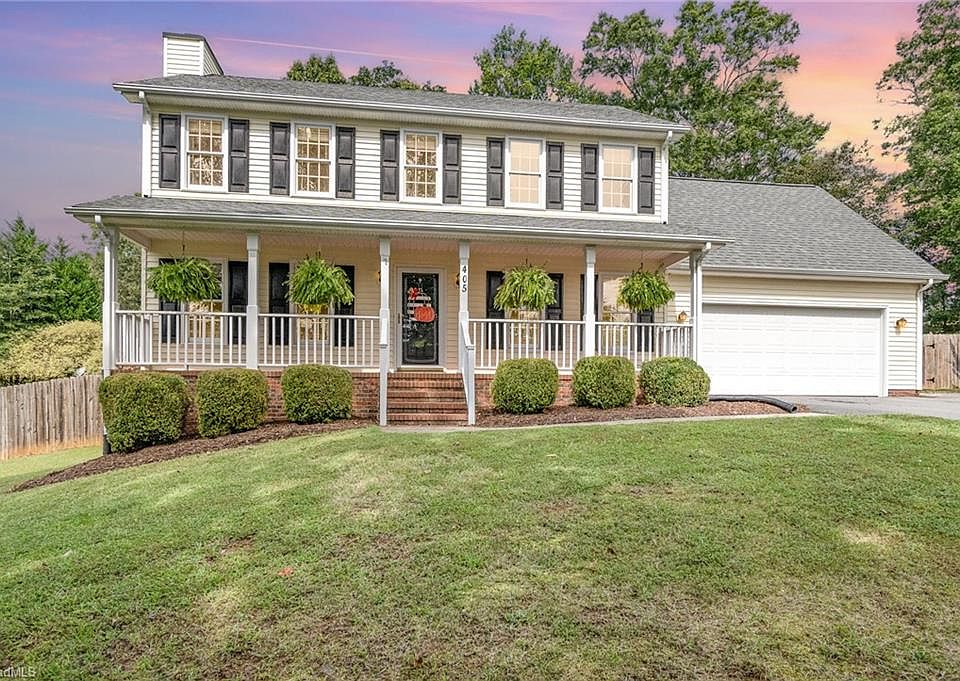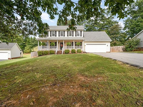 Welcome to this beautifully maintained 2-story home that perfectly blends comfort and style. Tucked away on a cul-de-sac with mature landscaping, this property features a rocking-chair front porch, a large fenced backyard, & inviting outdoor spaces ideal for relaxing or entertaining. Inside, the main level offers a warm living room with custom built-ins, hardwood floors, a wood-burning fireplace, & French doors leading to the back deck. The formal dining room with crown molding & chair rail adds timeless character, while the eat-in kitchen showcases granite countertops, a tile backsplash, & convenient access to both the backyard & garage. Upstairs, you’ll find 4 spacious bedrooms, primary suite with ensuite bath. The versatile fourth bedroom could also serve as a bonus room, office, or guest retreat. Additional features include a 2-car attached garage, extended driveway, & laundry room. Seller providing one-year home warranty. This home is move-in ready—schedule your tour today!
