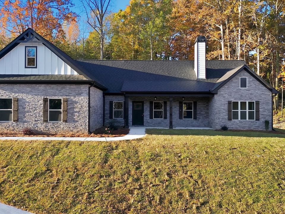 Experience the perfect balance of style and comfort in the desirable Ayers Creek Subdivision. The Foxwood floor plan combines thoughtful design and modern elegance, offering 3 bedrooms, 2.5 baths, and a versatile bonus room that can serve as a 4th bedroom or media space. The inviting living room features a coffered ceiling and a wood-burning fireplace, creating a warm setting for both entertaining and relaxing. Throughout the home, Craftsman details add timeless character and charm. The kitchen is beautifully appointed with granite countertops, custom cabinetry, and plenty of workspace for cooking and gathering. The main-level primary suite provides a private retreat with a tiled shower, tiled floors, cultured marble countertops, and a spacious walk-in closet. Upstairs, the finished bonus room offers flexibility to adapt to your needs-whether as an office, playroom, or guest suite. Durable LVP flooring enhances the main living areas, while soft carpet adds comfort to the bedrooms. The home's exterior features cement siding with masonry accents for lasting beauty, and a covered back porch perfect for relaxing or entertaining outdoors. Nestled in a vibrant, growing community, this home blends modern convenience with classic craftsmanship.