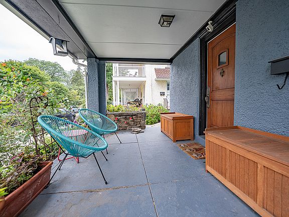 Updates include a new roof, fresh exterior paint, interior paint, and a newly installed backyard privacy fence. Outdoor amenities include a gardener's dream landscaped backyard with raised flower/garden beds, three arches with mature perennial planting, slate patio with surrounding garden beds, and a front covered sitting porch. Off street parking for two cars, with an electric car charger.