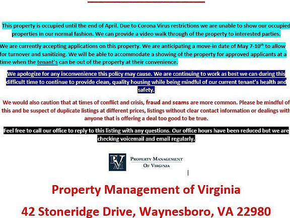 This condo leaves nothing to be desired. Over 1500 square feet of living space. Ground floor offers handsomely updated kitchen with vaulted ceiling with skylight. Refreshed cabinets with new counter tops and all new matching black appliances including stove, fridge, microwave and dishwasher. Kitchen has breakfast nook for casual dining. Main living space of combined living room and dining room is also on the ground floor and is as spacious as one could want. Living space is anchored by a gas log fireplace in corner. Rear exit off living room opens to cozy back screened porch. Master bedroom on ground floor is spacious and offers large walk-in closet and full attached bath. Half bath serves the rest of the ground floor and features washer and dryer closet. Upstairs you'll find two secondary bedrooms that are both impressively large. Second full bath serves the second floor and opens to one of the bedrooms. Unfinished attic space offers plenty of extra space for storage. One car attached garage opens to front entry hall way. This handsome condo is sure to impress the most discerning of shoppers with lovely hardwood floors through out, fresh paint and updated bathroom fixtures. Central heat and air. Tenants pay their own gas, electric and water at this location. Strictly a no-smoking, no-pets property. Call Property Management of Virginia with questions!