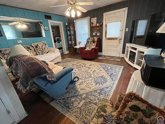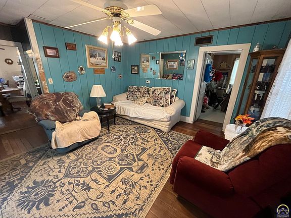 This 1 & 1/2 story home has 2 conforming bedrooms, one full bathroom. A 3rd room on the upper level could become a bedroom with some finishing and a closet addition. The main level has hardwood floors throughout most of the area. Kitchen & Dining room combo. The backroom has utilities and laundry. On the exterior is slate siding, and some windows have been replaced. 1 car detached garage has vinyl siding and a metal roof.