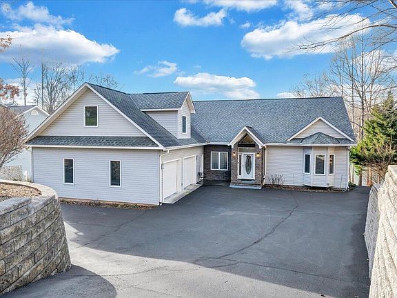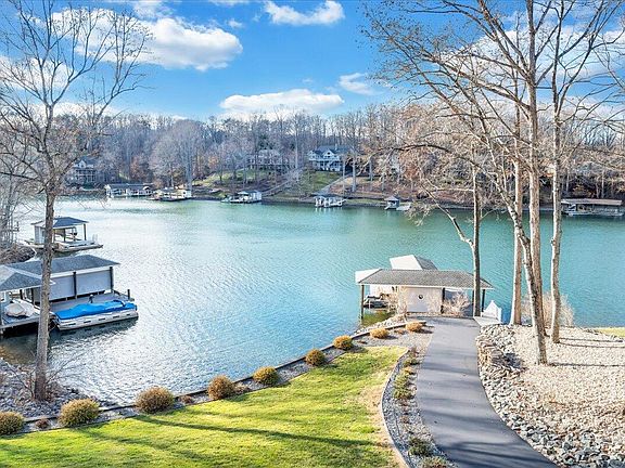 Custom-Built Luxury Lakefront home with large deep water no-wake cove. Quality 2x6 construction with approximately 5000 finished Sq.Ft. Spacious open concept Great-room overlooking the lake w/cathedral ceilings and a stacked Stone hearth gas FP. Newly remodeled Kitchen has spacious Island, Cherry Cabinets, leathered granite counters, top of the line appliances including a 36'' cook top with downdraft. Dining area w/multi trayed ceiling & lighting. Breakfast Room area full of windows overlooking the water. Main Level living with master bedroom suite w/cathedral ceiling, lake views & covered balcony. Custom bath has double vanity and walk-in tiled shower. A second bedroom and bath on main level. There is a large pantry, laundry room, storage, and access to the oversized 2 car garage... from this main level. Bonus room over garage could be used as a 5th bedroom or home theatre. Enjoy the solitude of the wrap around covered & screened porches overlooking lake activity. The walk-out lower level is open concept including a large recreation room with 2nd stacked stone gas fireplace. High ceilings, surround sound, Wine bar/kitchenette, Workshop. Large lower level Guest bedroom, a bathroom, and 4th bedroom currently used as an exercise room. Then out to the patio to relax and enjoy the lake view. Professionally landscaped property, irrigation system, beautiful stone walls, stamped concrete patios and walkways and easy paved path down the water (golf cart conveys). A gentle walk down to the lake where you can enjoy the oversized dock. Dock is composite materials, has both boat slip and jet ski lifts, each with remote controls & has Irrigation/water Pump. This home is in a highly desired area of the lake, wonderful neighbors, centrally located to everything both by Water and by land. Many extra features in this beautiful home that has been meticulously maintained. Discover your new lifestyle at this wonderful Lakefront home! See documents for more features, and items that convey. Boat and Jet-Ski available by separate bill of sale, (Detailed list available).