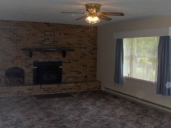 Nice two bedroom on cul-de-sac with woodstove/fireplace, dishwasher, shed, laundry, window air. Verifiable gross household income of approximately $43,000 and good credit required. If interested, please respond with your gross annual income, credit score, employment and pet info. We may consider pets. Please provide the requested general information if you would like to see the house. Tenant to pay quarterly water and sewer