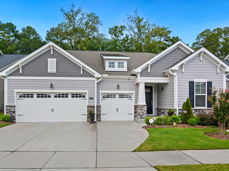 Immaculate & move in ready ranch style home with 2nd floor bonus room & bedroom with full bath. Luxury vinyl plank flooring throughout most of 1st floor. Office/flex space with french doors. Spacious family room features gas log fireplace & built-in cabinets. Chef's kitchen offers granite tops, center island, stainless steel appliances (gas cooktop), heringbone tile backsplash & walk in pantry. Large primary suite has trey ceiling, oversized tile shower with bench, granite tops dual vanities & walk in closet with built in shelving. Laundry area with pass thru closet to primary suite. Expansive bonus room. Oversized 3 car garage. Screen porch + patio. Fenced backyard with great wooded views. Resort Style 55+ community with Olympic Pool, Tennis, Pickleball, clubhouse +++ Must See!