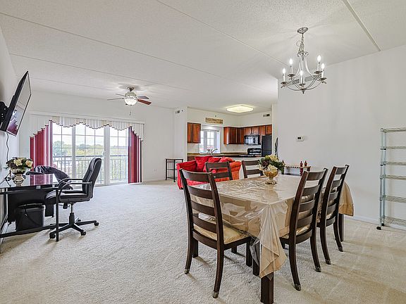 Freshly painted 5th-floor unit with an open floor plan, 2 bedrooms, and 2 full baths. Features include a warm, inviting kitchen, primary suite with walk-in closet and double vanity, in-unit laundry, and garage parking with extra storage. Secure building with surveillance and all utilities (water, heat, gas, parking) included in HOA. Enjoy nearby walking paths, tennis courts, and playgrounds, plus quick access to Hwy 53, shopping, and dining. The Chicago Bears may plan a new stadium at the former Arlington Park race track in Arlington Heights, expected by 2030. Move-in ready and perfectly located!