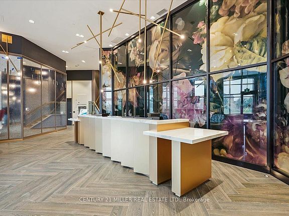 Brand-new, never-lived-in 2 bedroom + den executive suite complimented by 2 included parking spaces nestled in Oakville's prestigious Distrikt building. This spacious and stylish unit offers an open-concept design with 9' ceilings and laminate flooring throughout. The modern kitchen features a luxurious combination of glass and European laminate cabinetry including a convenient bank of soft close drawers and cabinets, one side waterfall island, quartz counters, porcelain backsplash and stainless steel appliances. The highlight is the expansive terrace, one of the largest in the building, accessed from the sunlit living/dining area and primary bedroom. Enjoy two spacious bedrooms, including a primary suite with a walk-in closet and ensuite bath. Completing the layout is an additional bedroom and den (which can serve as a 3rd bedroom), a main 4-piece bath and ensuite laundry. Residents of this exclusive property have access to a locker and an abundance of amenities, including a 24-hour concierge for added security and assistance, double-height fitness studio equipped with cutting-edge weights and cardio equipment, and various indoor and outdoor spaces for yoga and Pilates enthusiasts. Outdoor amenity spaces, a rooftop area, surface parking for visitors, bicycle parking, and more contribute to the overall appeal. Conveniently located within walking distance to shopping and dining options, and just a short drive away from major highways, including HWY 407/403, making your commute a breeze.