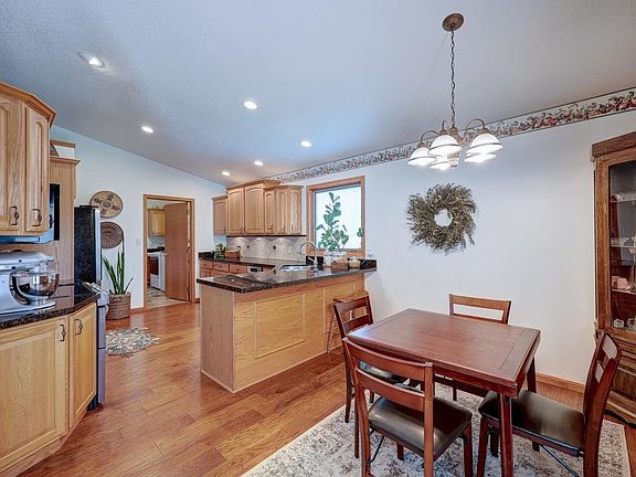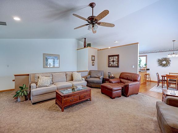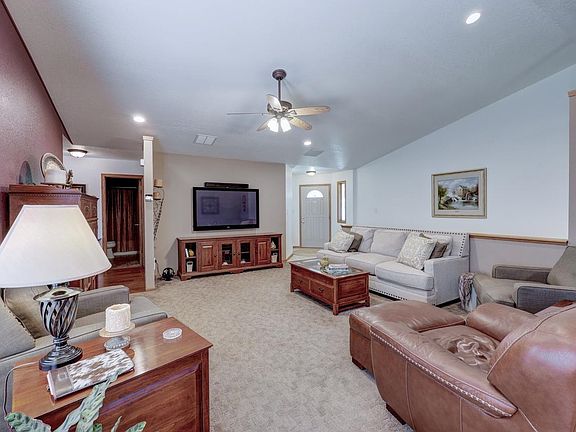 Welcome Home! This beautiful one owner home will catch your eye from the moment you drive up. Situated on a large corner lot, this 4 bedroom (2 up, 2 down), 3 bath home is just waiting for you to move in! Custom built, one owner home truly has lots of bells and whistles from the exterior to the interior. You are welcomed with a large living room area, that opens to the eat in kitchen. Sliding Pella doors with enclosed shades allows you access to the nice deck. Kitchen has ample counters, eating bar, granite counter tops and a large pantry. All kitchen appliances to remain with the home. Large laundry/mud room is off the garage entry door. Master bedroom has a walk in shower, with 2 sinks plus a large walk in closet. There is a seperate door in the master that leads out to the composite deck. A guest bath and another bedroom round out the first floor of this home. An extra wide stairway will lead you to the basement with view out windows, a large family/rec room, a nice sized bathroom and two additional bedrooms. There is a basement storage room, along with the mechanical room and a storm shelter. Class IV roof new in 2016, insulated vinyl siding, high efficiency zoned heat/air and hot water tank, 20" fiberglass insulation in attic, sprinkler system with irrigation well, 50 amp receptacle in garage with a golf cart space, concrete storm shelter in basement, granite countertops in upstairs kitchen, bath and laundry, just to name a few items. There is a HOA (not active) and no dues are currently being collected. What are you waiting for? Call me to schedule your private showing today!