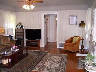 Charming, well-maintained 2 bedroom native stone house with a beautifully landscaped, park-like yard. 18x20 living room with brick gaslog fireplace. 10x13 formal dining room. 10x13 kitchen with lots of cabinet and counter space. Hardwood and vinyl floor. 2 baths. Nice-sized utility room. Full unfinished walkout basement. Chain link fenced back and side yards. Large garden spot. This is a beautiful place, both inside and out.