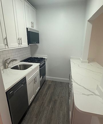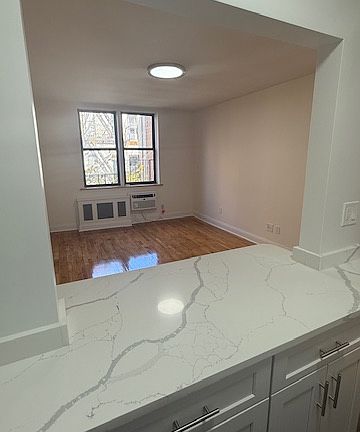 This newly renovated apartment offers an open kitchen with stainless steel appliances, quartz countertops with a Breakfast Bar, and stylish finishes. There are hardwood floors throughout the apartment.