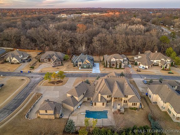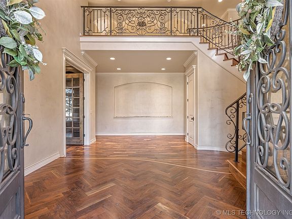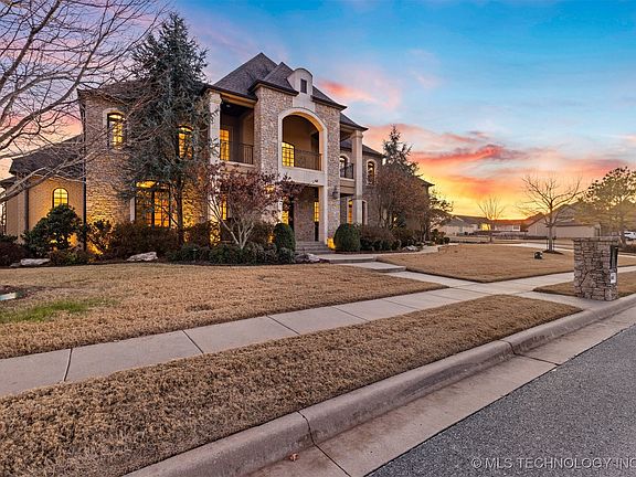 This stunning custom estate, located in a desirable gated neighborhood, is brimming w/ amenities, all perfectly positioned within a skillfully conceptualized floorplan! As you enter through the double wrought iron doors, you are immediately taken by the soaring ceilings, grand staircase, intricate flooring & custom railings! Ideal for seamless entertaining, the expansive living spaces, stunning formal dining room w/ wet bar, theater room & colossal game room provide endless options. Thoughtfully designed w/ functionality & privacy in mind, the 5 spacious bedrooms all boast en-suite baths & walk in closets. The primary suite is a true retreat w/ a sitting area and spa-like en-suite featuring a walk-in shower w/ rain shower head & body jets & his and hers closets w/ built-in cabinetry, all leading to the downstairs laundry room. The 2nd primary suite is perfect for comfortably hosting guests, w/ large walk-in closet & dual sinks. The kitchen is a chef’s dream, w/ Thermador appliances, 4 ovens, built-in fridge/freezer, pot filler, expansive island, ice maker hookup & 2 sinks! The amazing mudroom provides direct access from the pool to a full bath, 5 cubbies for storage & convenience, a desk for the home computer & mail & a wonderful walk-in pantry. The handsome executive office has built-ins & a walk-in closet, making work from home a pleasure. The sparkling salt-water pool & wood-burning outdoor fireplace will be the setting for many amazing summer days & memorable evenings. For enthusiasts or collectors, the 7-car garage is amazing, w/epoxy floors, storm shelter & and dedicated space for a workbench, storage or the golf cart & toys. A full staircase above the detached 3 car garage leads to an unfinished space, which could be finished to provide another home office, mancave, studio, the possibilities are endless! Other amenities are a home generator, 2 staircases, motorized chandelier lifts for cleaning, laundry up&down, powder rooms up&down & tankless water heaters.