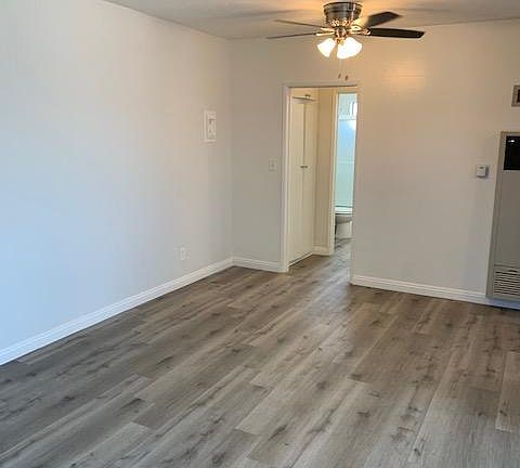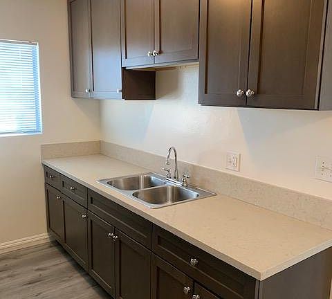 This unit is not to be missed. Upstairs 1 bed, 1 bath apartment. Beautiful kitchen cabinets, quartz countertops, gas stove, vinyl plank flooring throughout the entire unit. Front facing unit on the 3rd floor gets lots of natural light. Comes with one assigned parking space in a shared garage. The complex is gated and has a shared pool and shared laundry room. Please contact the onsite manger for a showing. Rental requirements: No prior evictions Good credit history and credit standing Gross income of three times the rental rate Owner pays water, gardening, and pool services. Tenant pays electricity & gas.