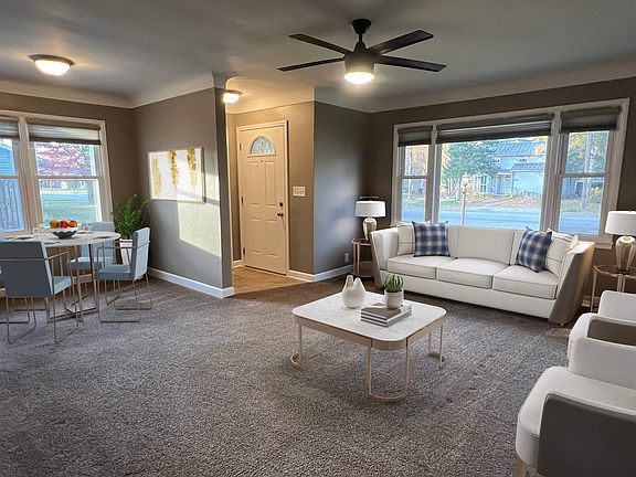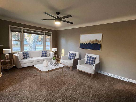 Completely renovated ranch home, ideally situated in a convenient location. Close to the park, schools, downtown, and along the parade route. Home includes 2 bedrooms, a full bathroom, a bright kitchen, and full basement. The spacious living room features lots of windows and space for dining. Enjoy the large fenced backyard, complete with a 14'6" x 13" patio and a covered grill station and 1 car attached garage. Updates include: paint and west side fence in 2024, Smart water softener, Upgraded electric panel, pex water lines in 2022; Roof and gutter guards in 2020; Siding, Soffits, gutters in 2019; Sanitary line to the street in 2017, HVAC 2014. Some photos are virtually staged.