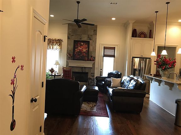 Come see this 4BR/2BTH Split Plan home located in Gardens of Manship. Walk in the home to an open floor plan for Living, Dining, and Kitchen. Pine Wood Floors in these areas as well as the Master Bedroom. The front bedroom can be entered into from the living area and used as an office if needed. Kitchen has granite counter tops, two spice racks, stainless appliances, and Large Pantry. Master Bedroom has pine vaulted ceiling and Master Bath has jetted tub, separate tile shower with seat, and double vanities. Nice covered back patio out back.