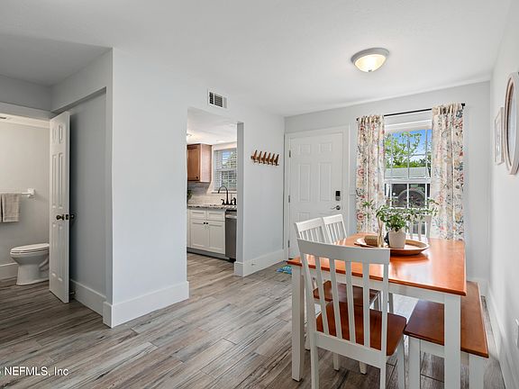 Don't miss this rare opportunity to own a turn-key end-unit townhome in Salt Run II. Located in Davis Shores on Anastasia Island this fully renovated 2BR/1.5 BA residence offers 1,098 sq ft of low-maintenance coastal living and is ideally suited as a vacation home, investment property, or full time residence. Recent upgrades include stainless steel appliances, luxury vinyl plank flooring in the bedrooms, and tile throughout the ground floor and wet areas. New modern fixtures create a stylish and comfortable interior. The semi open concept kitchen seamlessly connects to the living and dining areas. Both bedrooms are located on the second floor, each offering abundant natural lighting, walk in closets and a shared updated bath. Enjoy outdoor relaxation with covered porches on both levels as well as a shared courtyard. This unit also boasts of an assigned parking space and one of 5 coveted carport spaces.