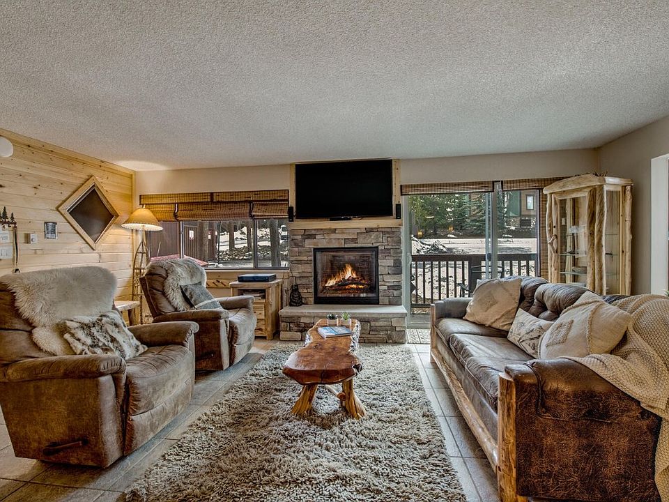 Cozy stone fireplaceSki-in condoPrivate patiosTwo outdoor hot tubsIn-unit laundryLarge in-unit storage room