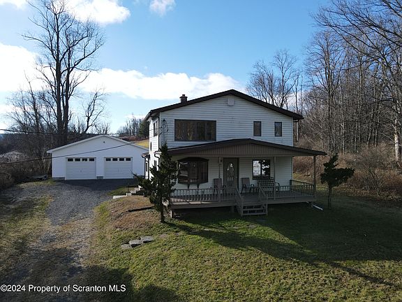 Well maintained 2 bedroom 3 bath home on almost 1/2 acre of land in the Abington Heights School District. Open floor plan with nice sized rooms. Master bedroom and bath on the second floor. Lower level has sheet rocked walls and heat. It could easily be finished for additional living space. There is a large 2 car detached garage.