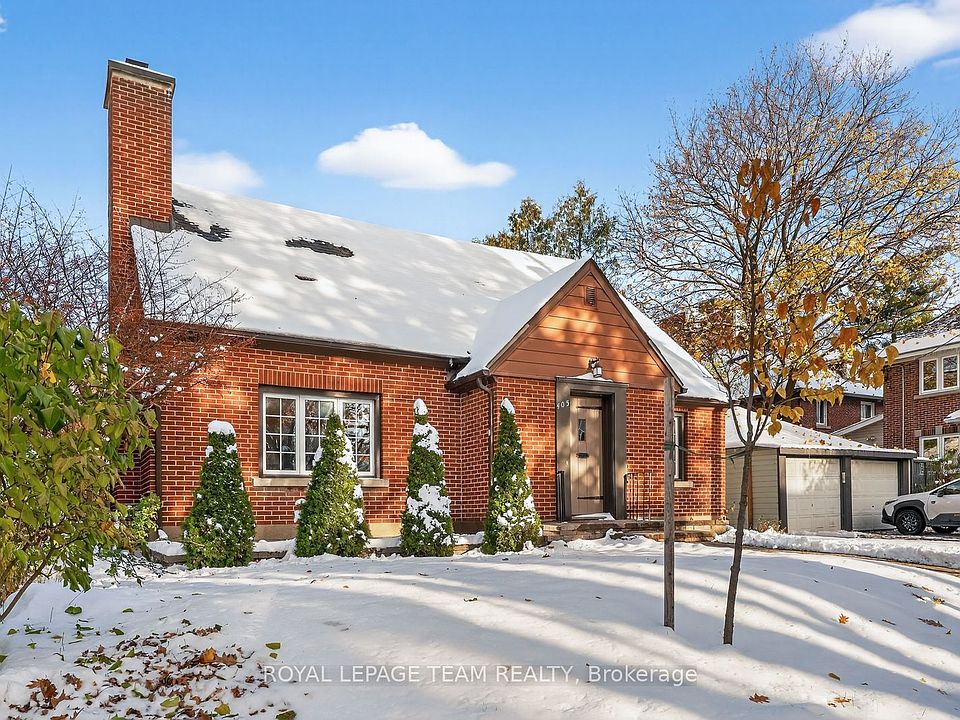 Beautiful 1932 red-brick home in the heart of the Civic Hospital neighbourhood. Filled with natural light and original charm, this spacious residence offers surprising versatility across three levels. A bright living room with gas fireplace and built-ins opens to a generous kitchen with warm cabinetry and a pass-through to the dining room. The sunroom leads to a large rear terrace and private yard-rare for the area. Two main-floor bedrooms share a full vintage-style bath. Upstairs, two expansive loft rooms create exceptional flexibility: a dreamy primary suite with full bath, guest space, office, or studio. The lower level adds a huge rec room with built-ins, workshop, laundry room, and third full bath. With a detached garage, abundant storage, and outstanding walkability to the Civic Hospital and Wellington West, this home blends historic character with modern comfort in one of Ottawa's most desirable communities.
