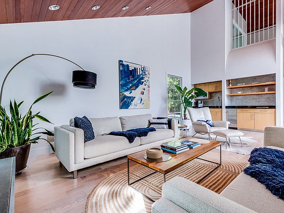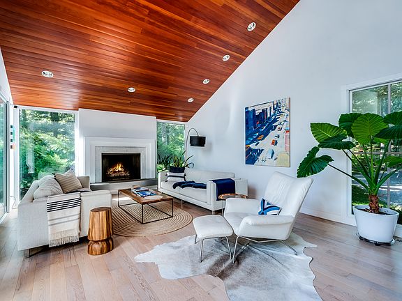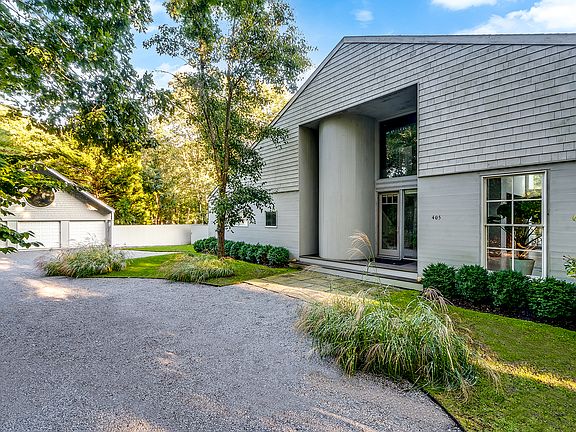 Rental Registration #: 24-35 Located deep at the end of a private driveway on a shy 2 acres holds this beautifully renovated contemporary with extraordinarily unique design features. The open flow interior with dramatic height ceilings and continuous expanses of glass provide fantastic abundant natural light throughout. The gourmet kitchen and dining area glide effortlessly to the spacious sun room oasis. The living room has a gas fireplace and wet bar for entertaining. The separate guest wing, perfectly situated for privacy, holds a second master with bath and two additional bedrooms each en-suite with baths. The expansive master suite occupies the entire second floor with over-sized master bath and walk in closet. To complete this perfect outdoor lifestyle is expansive mahogany decking, new heated gunite pool, and north south tennis court. In addition, there is a 3 car detached garage. This unique offering is located moments to East Hampton Village and Ocean beaches.