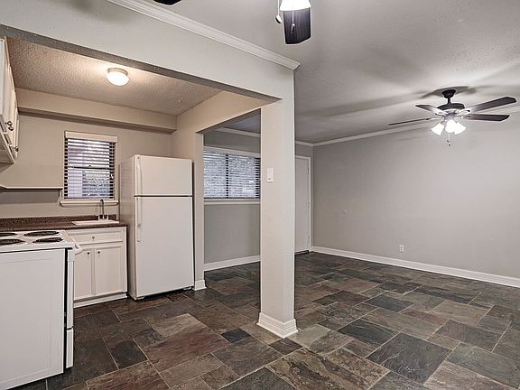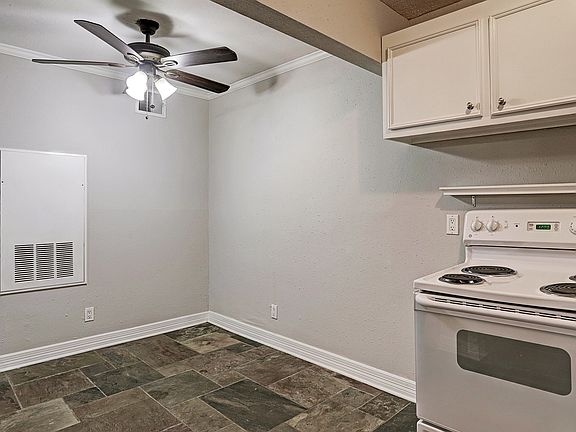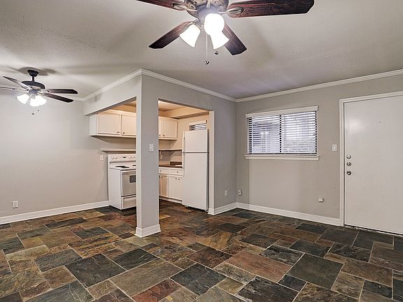 Large 1-1 in small gated community. Slate floors throughout, central air/heat, ceiling fans, 2" faux wood blinds, off street parking and laundry on site.