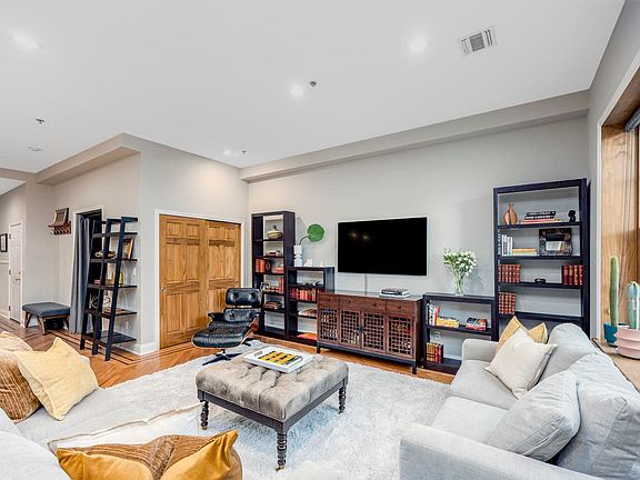 The oversized primary suite boasts bay windows, a custom walk-in closet, and a spa-like ensuite bath. The spacious second bedroom easily functions as a guest room, home office,The second bathroom shines with elegant marble tile and modern fixtures.