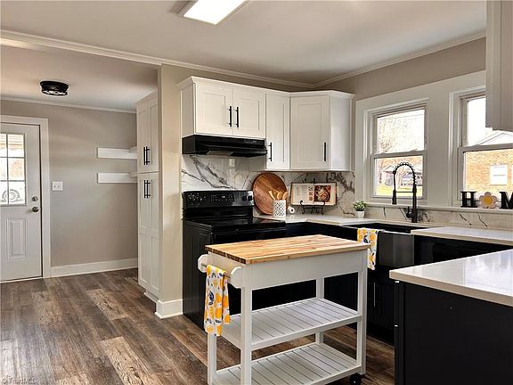Welcome to this beautiful bungalow! This is a bright & cheerful home, where big windows let in plenty of natural light, filling the living room with warmth and charm. The shiplap accent wall adds a modern farmhouse touch, making it the perfect spot to kick back and relax. The brand-new kitchen is both stylish and practical, featuring quartz countertops, stunning tile backsplash, soft close cabinets & portable island for extra prep space when you need it. Right behind the kitchen, a spacious pantry for tons of storage & keep everything organized. This home has been updated throughout, with a beautiful bathroom, modern light fixtures & durable luxury vinyl plank floors that are great & easy to maintain. Outside, enjoy 2 porches—front porch for greeting guests & side porch perfect for your morning coffee or winding down after a long day. Whether you're looking for your first home or hoping to downsize, this cozy & well-designed space is simply perfect (Agent has interest in property)