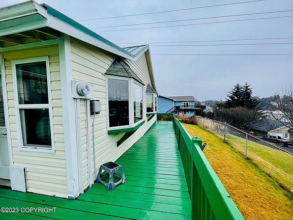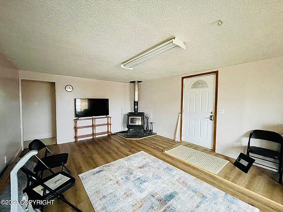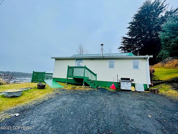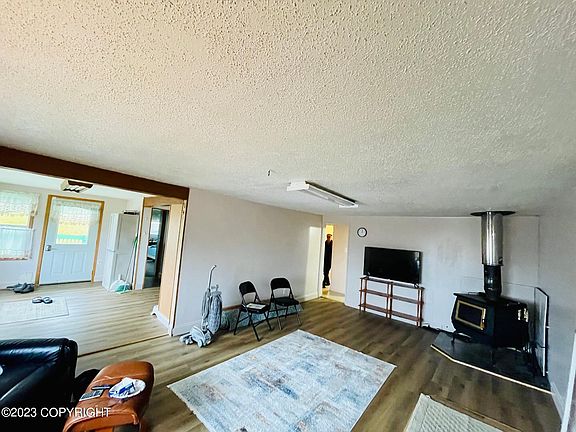 This 2 bedroom, 1 bath home with new flooring, a large wrap around deck, wood stove, situated on an over 1/2-acre lot. Approximately 1100 square feet of living space, with an arctic entry way (store wood, coats, shoes). An older banya is situated on the lot. Please qualified buyers!