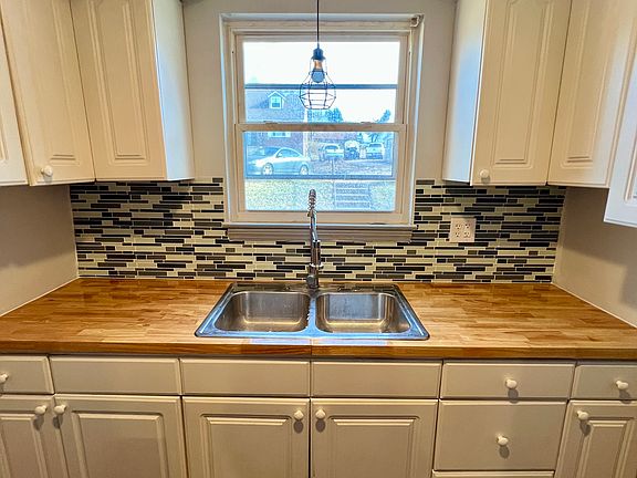 All new kitchen shaker cabinets, stainless steel appliances (varies by unit), Whirlpool dishwasher (varies by unit), butcher block countertop single-bowl deep zero-radius stainless sink, and a stylish glass/tile backsplash.
