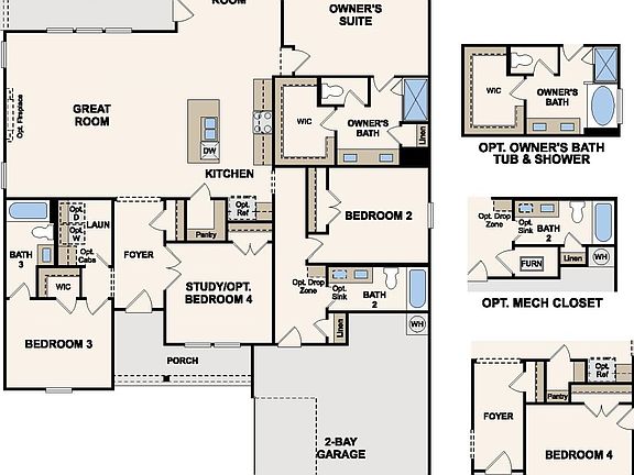Large covered patioThree bedroomsExpansive great roomWalk-in closetImpressive kitchenWalk-in pantryCenter island