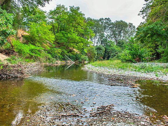Charming Creekside! Discover peace and privacy in this well-kept, spacious home nestled on just under half an acre. Featuring 3 bedrooms & 1.5 bathrooms, this home boasts an open floor plan and a sun-filled bonus room making a very special primary suite. Vaulted ceilings, skylights, hardwood oak flooring and Quartz counter tops in the kitchen. Enjoy covered decks on both sides, opening to lush grounds. Meandering pathways lead through the spacious yard—ideal for projects, gardening and play—down to serene creek frontage, offering the perfect spot for picnics, relaxation, or simply enjoying nature. A detached 2-car garage provides ample storage with a large, paved area for additional parking. Located in the quaint Rogue River, this home offers convenient services & access while still embracing a tranquil, easy-living lifestyle.