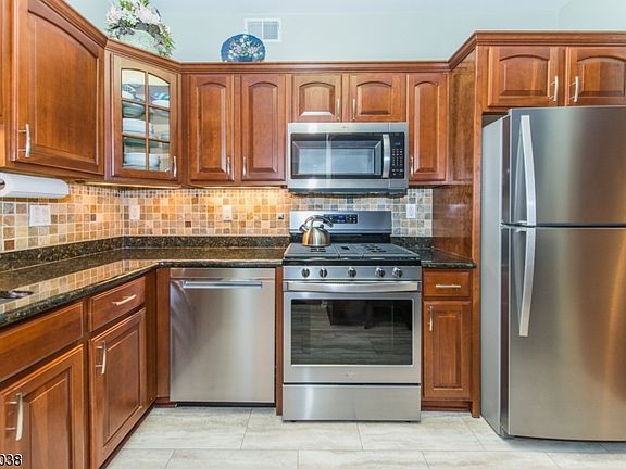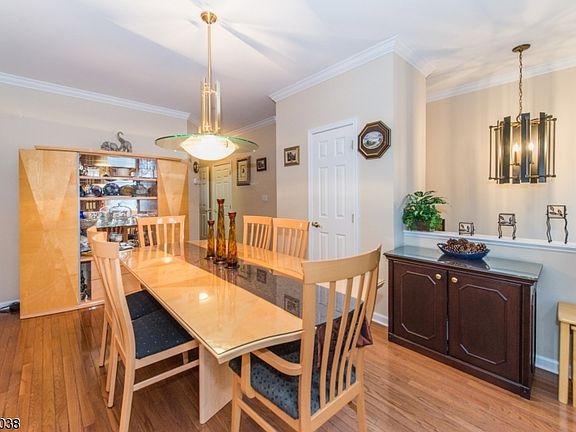 Beautiful, well maintained tri-level home with hard wood floors throughout. Ground level room has extra full bath and can easily be used as a third bedroom, with walk out to patio and lovely fountain view. Kitchen includes granite counter tops, new stainless appliances, extra cabinets and new floor. Recessed lighting, crown molding and mirrors add to the lovely feel of this home. Spacious master bedroom suite with stall shower and soaking tub, large closets, cathedral ceilings and laundry on same level. The home also has a new water heater and custom cabinets in the garage. Great location in this gated community with pool, tennis, playground, clubhouse with gym and saunas. Walk to restaurants, movies, shops, schools, parks, buses to NYC and jitney to the train