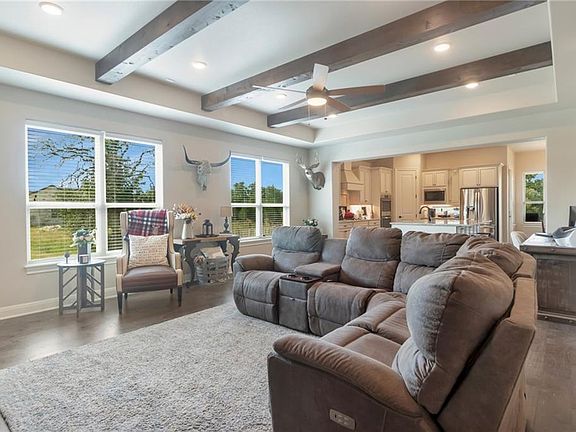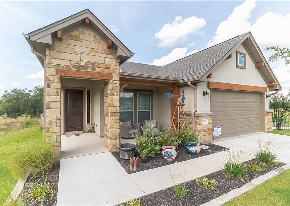 Backing to a GreenBelt in the Gated Section with Front yard maintenance! This popular Wimberly plan features 4 bedrooms & wide-open living spaces. The kitchen offers great space for entertaining w/ an oversized island, custom cabinets, large farmhouse sink & GAS STOVE. The bathrooms offer stunning design choices w/ granite counters & large walk-in shower. 2 car garage, covered porch & more! Tall ceilings, bright natural light, and a large covered back porch to enjoy nature and your privacy! .Restrictions: Yes Sprinkler Sys:Yes