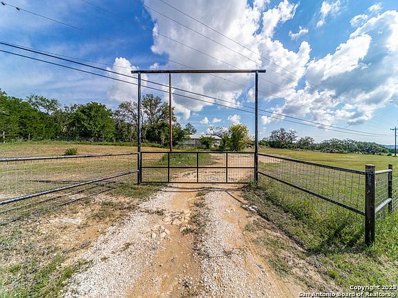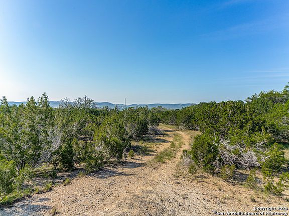 Oh, The View, The View! Come on out.."Out in the country, before the breathing air is gone. Enjoy this unique 12 plus acres "out in the country property" with no HOA and limited Restrictions and picture where you would build your home. Land is level and open up front for strolling and has many mature trees. As you walk to the back of the property you will see several old structures on the property. One is a 2 stall horse pen. Both structures need some TLC but do have value. Keep walking to the back and up the hill to see the building spots and take in the view of the Texas Hill Country at it's best. View looks out past HWY 46 and further. You can see for miles and miles. Just imagine the home you could build on this property. Property does have Fencing on all sides and a gate in front for privacy. The property is at a T and Bruce Leeder Lane leads you straight to the gate of this property. Sturdy and very usable 1200 sq. foot concrete block 2 bed/1 bath home with V crimp metal roof on property was originally the bunk house for the workers on the original ranch. Please call with any questions as I am happy to help. Come on out, bring your lawn chair and sit a spell enjoying the view of the Texas Hill Country.