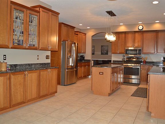 ABSOLUTELY GORGEOUS! Stately custom build with the best view on the cul-de-sac! Impressive curb appeal features brick and stone front accented by lighted soffits. Light & bright foyer with soaring 2-story ceiling and gleaming Brazilian Tiger Wood floors greet you upon entering. Sprawling kitchen boasts rich granite counter tops with center island, 48" upper cabinets, butler's pantry and SS appliance suite all overlooking a 40X15 cedar deck. The well -appointed family room offers cathedral ceiling feature complimented by a towering 2-story custom masonry fireplace flanked by colossal windows with eyebrow feature, wet bar and 2nd staircase to upper level! The convenience of a 2nd floor laundry room with plenty of storage space will wow! All bedrooms are generous in size: 2 with Jack/Jill bath, one with hall bath and en-suite in master. Spa-like master bath renovation in 2014: new flooring, custom shower, television mounted to wall and separate vanities with granite c-tops! HSA Warr