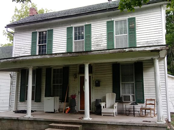 This stately home is full of potential. This is definitely a diamond in the rough! Great yard with Mature trees in front, fenced back yard, columned porch, federal styled architecture. Hardwood floors, 2 remodeled bathrooms, but needs a roof for sure! Also needs Sheetrock in some rooms, walls and ceilings. Kitchen is usable but needs a little TLC as well. This is a project house, but lots of living space for the price. In back is a nice carriage house with original folding doors and a loft.seller is moving out of town, so everything stays but the master bed, refrigerator and washer/dryer.