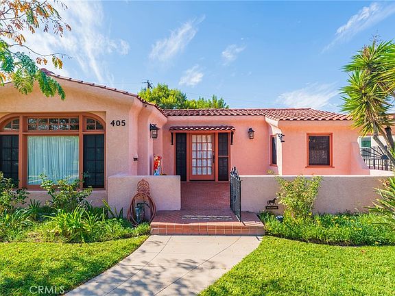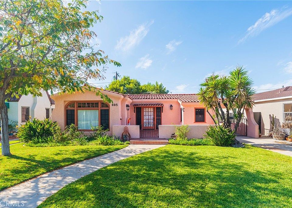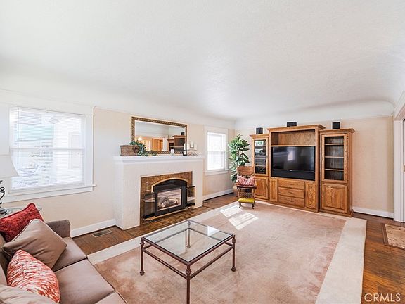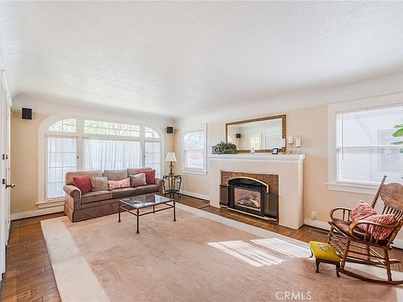 This stunning Spanish Revival home rarely comes to market, set on a gorgeous, quiet street filled with unique custom historic properties in a prized part of the Anaheim Colony Historic District. The vintage elegance inside shines with original architectural details: soaring coved ceilings, a gas fireplace, and expansive room sizes, complemented by the home's hardwood floors, built-in bookcases, and dramatic arched front window. Hosting is easy with the spacious dining room, featuring beautiful pocket French doors to the living room and an exterior French door leading to the front porch for optimal flow. The kitchen has been tastefully updated with real oak cabinets, a pantry, tiled counters, and a fabulous breakfast nook with built-in benches. Out back, a French door leads to a picturesque yard with a covered patio and mature trees that filter the afternoon sun, keeping the house cool. Both bedrooms are large with walk-in closets, and while vintage, the home enjoys the essential modern upgrade of central air and heat, plus a very long tandem garage perfect for two cars or a generous workshop. This home may be eligible for the Mills Act program through the City of Anaheim where the new owner may be able to save up to 60% off of their property taxes. Location is key: you're just blocks from beautiful Pearson Park (duck pond, courts, events) and a short distance to the vibrant dining and entertainment of the Center Street Promenade and Packing District, with the 5, 91, and 57 Freeways minutes away. This home truly is the whole package.