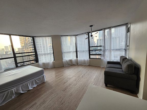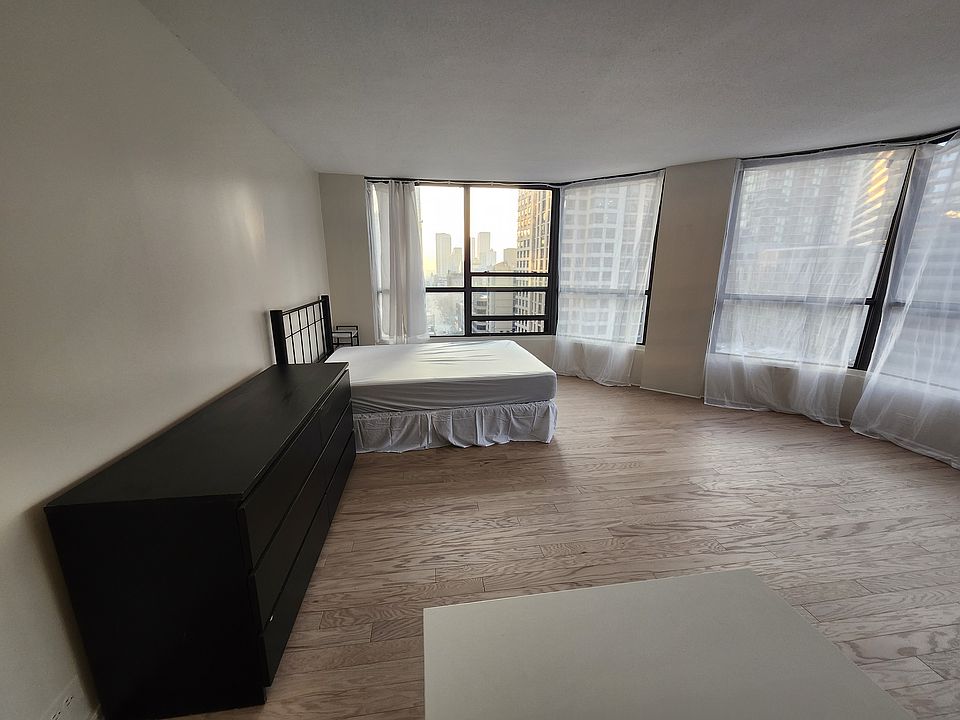 Furnished Corner Studio in River North City Views! This spacious, fully furnished corner studio is located in the heart of River North and offers stunning west and north-facing city views. The unit is filled with natural light and ready for move-in. Rent includes heat, air conditioning, water, cable, and internet. The unit comes furnished with a bed, bedside shelf, desk, sofa, drawers, shoe rack, bar table with a chair, and a wire shelving unit. The kitchen features brand new stainless steel appliances and quartz countertops. River Plaza offers excellent amenities including 24-hour door staff and maintenance, on-site management, a fitness center, indoor pool, sundeck, package room, hospitality room, and a large laundry room with wireless app access. No pets, smoking, or vaping are allowed in the unit or common areas. The lease is a 1-year minimum with a one-month security deposit. The application fee is $50 per applicant. **You need a full credit report for the application. Tenants are responsible for electricity and any cable or internet activation fees. Renters insurance is required. The building charges a move-in/out fee of $200 on weekdays or $300 on Saturdays, and a $20 fob fee per tenant. It's just steps from the Magnificent Mile, Chicago River, public transportation, restaurants, and more. Don't miss out on this opportunity to live in one of Chicago's most vibrant neighborhoods! The lease is a 1-year minimum with a one-month security deposit. Rent includes heat, air conditioning, water, cable, and internet. Tenants are responsible for electricity and any cable or internet activation fees. Renters insurance is required. The building charges a move-in/out fee of $200 on weekdays or $300 on Saturdays, and a $20 fob fee per tenant. No pets, smoking, or vaping are allowed in the unit or common areas. Can't have more than two tenants live in the unit.