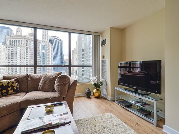 Experience city living in this nicely updated, south-facing 725 sq ft 1-bedroom condo, perfectly situated in Chicago's vibrant River North neighborhood. Enjoy breathtaking views of the Chicago River and the iconic Loop from your windows. This maintained unit boasts gleaming wood floors throughout, creating a seamless and elegant aesthetic. The kitchen is a true highlight, stainless steel appliances, pristine white quartz countertops, and a stylish tile backsplash perfect for culinary creations and entertaining. The updated bathroom has a chic vanity, contemporary floor tiles, and beautifully tiled tub surround. This unit has ample closet space ensuring all your storage needs are met. Even better, your rent includes nearly everything! Heat, air conditioning, water, cable, and internet are all covered, providing you with incredible value and convenience. Your home is located in the River Plaza building which offers a full amenity experience. You are greeted by your friendly 24-hour doorman station which also has evening security. The building also has on-site management along with a 24 hour maintenance team. The building also has a 24-hour fitness room, an indoor pool with hot tub for year round use. There is an outdoor sundeck looking out at the river located next to the pool. Not only that but the building also has a hospitality room, package room and on-site laundry room. Live steps away from great dining, exciting nightlife, premier shopping, and easy access to public transportation and so much more. Don't miss the opportunity to make this exceptional condo your new home! Contact our team to set up an in-person or virtual tour of the property. Contact us to learn more about the terms and conditions for the property. Application fee: $65 per applicant. Lease term: 1 year min. Building move in/out fee $200 Monday to Friday and $300 for Saturday. Renter's insurance is required. No smoking or vaping allowed in the unit.
