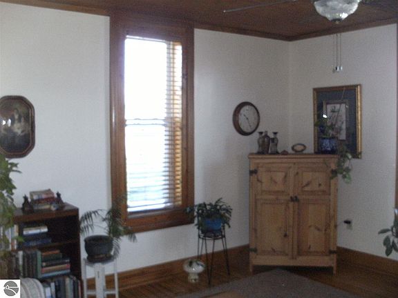GRAND OLD VICTORIAN HOME in Kalkaska. Three b/r, one bath and almost all hardwood floors. Ceiling fans, breakfast nook, covered front porch and partial basement. New roof in 2002 (30 year shingles),newer 40 gal water heater, high efficiency furnace in 2002 and new vinyl windows in 2004. Attached garden shed and attached workshop. Fruit trees in yard and a great flower garden. 24x32 two car garage with heated workshop and door opener. Some of the perennials will NOT stay. Purchaser is responsible for verifying room dimensions and square footage. Some appliances may be negotiable. Property can be used for commercial purposes.