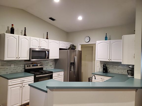 Well-maintained 3bd 2 bath CBS home with attached garage located within the City limits of Okeechobee. The property features a 12x20 Florida room equipped with screen and vinyl windows, and a window a/c unit.. The primary suite offers a walk-in closet and a step-in shower for added convenience. The home has porcelain tile throughout. Recent upgrades include a new air conditioner and appliances installed just two years ago, and a durable metal roof added in 2018. New solar panels make the home energy efficient. Additional amenities include hurricane shutters, gutters, a 12x14 shed, an irrigation system, and an above-ground pool, and a privacy fence around the back lawn, making this home a perfect blend of comfort and convenience.