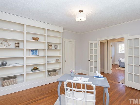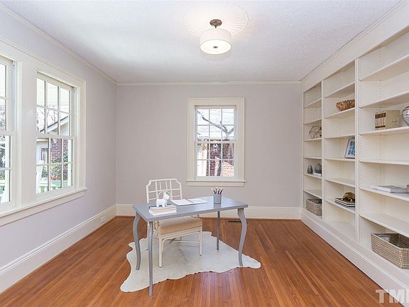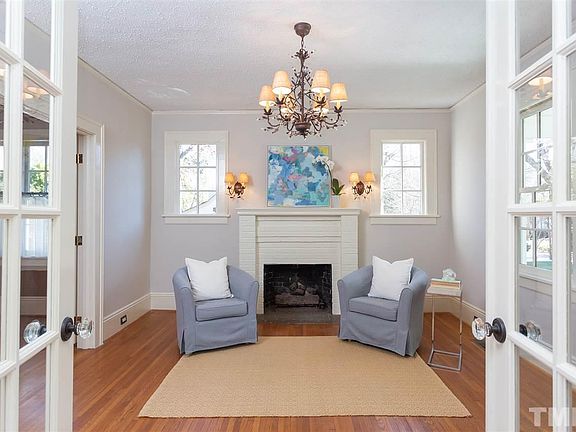 True North. 1929 CH charmer .5 mi to UNC's Old Well. Postcard-perfect, leafy-street. Rejuvenated classic with open, light-filled spaces + lofty ceilings. House hums with old + new: restored hardwoods; brick-chimneyed FP; custom built-ins; Quartz counters; tin-tile splash; statement curved-wall; sunroom with 4 skylights + sliding-glass door surround; 2nd kitchen; snazzy tile; substantial millwork+. Lower level could be separate apt. Fenced, lush, brick + flagstone patios in yard. Go forth to North!