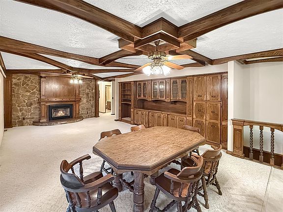 If you are you looking for a custom brick home on a sprawling lot with finished basement & outbuildings, you have found your match. Welcome to this timeless ranch-style home, built in 1972 with enduring quality and charm. Set on a beautifully maintained park-like lot, this expansive residence offers nearly 5,000 sq. ft. of finished living space — 2,490 sq. ft. on the main level and an equally spacious finished basement. From the moment you step inside, you’ll be drawn to the rich custom (Minot Sash & Door) woodwork, beamed ceilings, and detailed built-ins that reflect true craftsmanship. The open dining and living area offers an inviting space for gatherings, while the spacious kitchen features solid wood cabinetry and a functional layout ready for your personal touch. The home includes: three large bedrooms, four bathrooms, a dedicated office space with built-in hutch, storage, gun cabinet, expansive living and dining areas with stunning ceiling detail, gas fireplace, attached 2-stall garage with a workshop area. Enjoy the convenience of two additional outbuildings — ideal for hobbies, equipment storage, or creative studio space. Whether you're relaxing indoors or enjoying the private, tree-lined yard, this property delivers comfort, functionality, and potential in one beautifully maintained package. Don’t miss this unique opportunity to acquire a home with character, abundant space, endless possibilities, and distinctive architectural features. Call your favorite REALTOR to set up your private showing today!