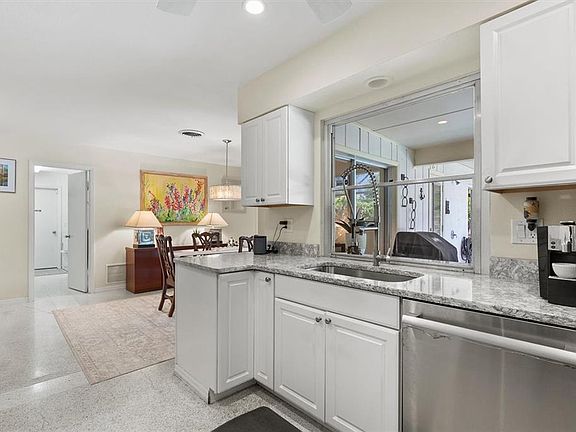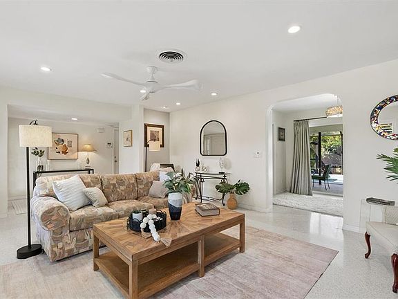 Just minutes from Venice Beach and the charming downtown shopping and dining district, this four-bedroom, two-bath pool home with a three-car garage blends comfort, style, and convenience as well as a beautiful sunset at days end. Go inside to find a light-filled layout designed for relaxed Florida living. The beautifully remodeled kitchen is the centerpiece of the home, showcasing Cambria quartz countertops, a professional-grade Thermador six-burner gas range, high-end stainless appliances, and two dual-zone wine coolers, ideal for casual meals and entertaining. A thoughtfully reimagined pantry adds storage and function. The primary suite feels like a private retreat with hurricane-rated French doors that lead out to the pool for a little moonlight swim. For those who like it a little cooler while sleeping, there is a separate mini split for the primary bedroom, so you don't have to cool the whole house. The updated primary bath features marble-topped double vanity and spa-inspired Roman shower with built-in seating. The additional bedrooms offer flexible space for family, guests, or a home office, each filled with natural light and designed for comfort. For added closet space, one bedroom has built-in closet system, making it a huge walk-in closet if needed, otherwise remove and use as a fourth bedroom. Go outside to enjoy a private backyard retreat with lush landscaping and an extended pool deck, ideal for entertaining. The pool is designed for year-round enjoyment with a pool heater for the winter months and chiller for summer. A 12-by-10-foot Tuff shed with windows and shelving adds extra room for storage or hobbies. Terrazzo floors throughout the home preserve its mid-century character and timeless appeal. Whether intended as a primary residence, seasonal retreat or investment, this home offers exceptional versatility with features that support full-time living, extended stays or seasonal rental. With recent updates including a new roof (2024), HVAC (2022), Kohler 20-kilowatt generator with 500-gallon LP tank, new pool pump and filter (2024), and updated plumbing, this home is move-in ready, offering peace of mind and the relaxed coastal lifestyle you’ve been dreaming of.