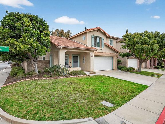 Welcome to Greystone, a sought-after gated community in the heart of Camarillo. This beautiful corner-lot home exudes charm and comfort. Step inside to a bright living room with soaring ceilings and abundant natural light. The formal dining room features a cozy fireplace and French doors that open to the serene backyard, perfect for indoor-outdoor living. The dining room could also be used as an office space or den for additional living space. The spacious kitchen includes a casual dining area and its own French doors leading to the backyard patio. A convenient powder room complements the thoughtful floor plan with a two car garage with direct access. Upstairs you will find a laundry room, two spacious secondary bedrooms with shared bathroom, and the primary suite complete with walk-in closet, double sinks and walk-in shower. Throughout the home, plantation shutters add timeless style and functionality. Enjoy the benefits of a low HOA fee with access to fantastic community amenities including a sparkling pool, relaxing spa, and playground. Ideally located near shopping, dining, parks, schools, and freeway access, this Greystone gem is the perfect place to call home.