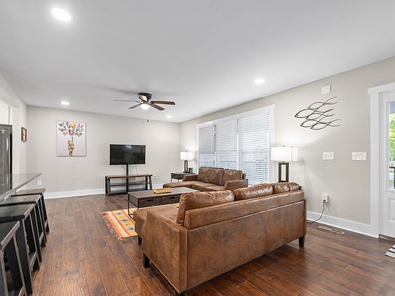 The main floor living area has an open concept with a dining area, half bathroom, living room and kitchen with an island/bar area.